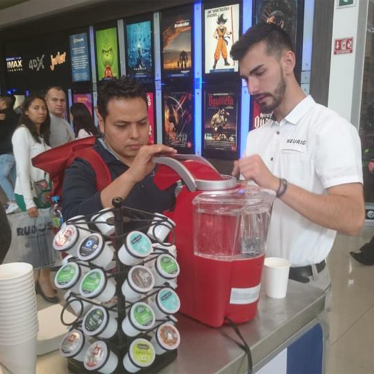 En colaboración con Keurig, desarrollamos una campaña innovadora que consistió en ofrecer degustaciones de café en plazas comerciales a nivel nacional. Para esta activación, propusimos y fabricamos un carrito móvil que se convirtió en el centro de la experiencia. El diseño del carrito incluía una cafetera Keurig en la parte superior, y lo más destacado fue la implementación de un sistema alimentado por batería, lo que eliminó la necesidad de conexión a energía eléctrica. Esto nos permitió mover el carrito libremente por diferentes áreas de las plazas, brindando una experiencia de café premium en cualquier lugar.